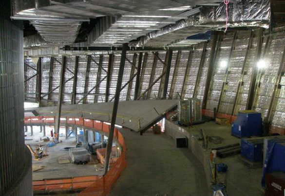 The Nascar Hall of Fame was designed to enclose a vast 3 dimensional curved track known as the “Flying Ramp” to simulate a race way to display retired racing vehicles. RSD designed the track to be supported on a spiraling central spinal tube to which were attached radiating cantilevered beams to support the sloped deck. The structure was designed to meet automobile gravity and seismic loads for seismic use group II and seismic design category B. Due to irregularity in available support locations the tube supports were extremely varied and required exacting geometric interaction with the architectural drawings. Additionally, the roof structure was designed with a complex rigging system to raise and lower the vehicles on and off the track.